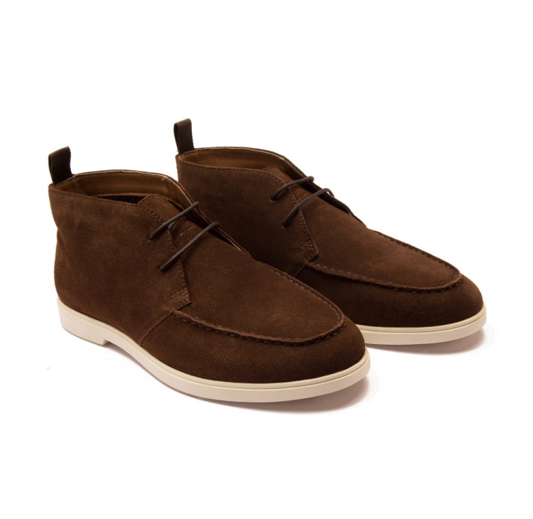 AUGUSTA Falcao Leather Chukka Ankle Lace-up Boot. This Chukka Boot combines classic design with modern functionality. Made from premium suede leather, it offers a luxurious look and long-lasting durability. The lace-up boot closure allows for a secure and customisable fit, adapting to your foot for all-day comfort. Featuring a breathable textile and textile/PU lining, the boot promotes airflow, ensuring your feet stay comfortable and fresh throughout the day. The durable TPR sole provides excellent traction and flexibility, making it ideal for various surfaces.